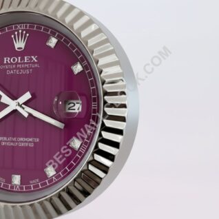 Rolex Datejust Stil – Dealer Display Wanduhr (Schwarzes Geriffeltes Motiv Geriffeltes Roségold)