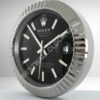 Rolex Datejust Stil – Dealer Display Wanduhr (Schwarz Baton Fluted Silber)