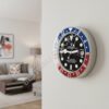 Αιχμαλωτίστε τη χρυσή εποχή της αεροπορίας με το ρολόι τοίχου Rolex GMT-Master II “Pepsi” Style. Διαθέτοντας την θρυλική μπλε και κόκκινη κάσα, αυτή η έκδοση Dealer Display αποτίει φόρο τιμής στο αρχικό ρολόι που σχεδιάστηκε για τους πιλότους της Pan Am, τώρα επανασχεδιασμένο ως ένα εκπληκτικό έργο τέχνης τοίχου.
