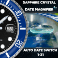 Updated 2020-style aluminium insert in a bold blue hue, precisely machined for a crisp, contemporary look.Functional Date Wheel
