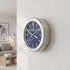 Il quadrante presenta il caratteristico Pattern “Tapisserie” in un ricco blu profondo, creando un effetto testurizzato ipnotico che gioca con luce e ombra. Incorniciato da una Cassa in Argento Spazzolato con bordi smussati lucidati, questo orologio porta un’estetica industriale ma ultra-lussuosa negli uffici dirigenziali, nei loft moderni o negli spazi abitativi all’avanguardia nel design.