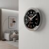 Gladde Gepolijste Bezel: In tegenstelling tot de gefacetteerde of draaibare bezels van andere modellen, heeft deze klok een vaste, bolvormige gepolijste zilveren bezel die een strakke, gestroomlijnde uitstraling geeft.