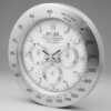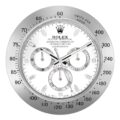 Hev ditt interiør med en raffinert veggklokke inspirert av den legendariske Daytona-kronografen. Den klare sølv- og hvitpaletten, skulpturerte 3D-ringer, og rene detaljer skaper et sofistikert midtpunkt for ethvert rom.