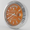 Styl Rolex Day-Date – Zegar Ścienny Dealer Display (Srebrny Żłobkowany / Baguette Szampanowy)
