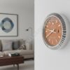 Zdominuj salę z ostatecznym symbolem prestiżu: Zegar Ścienny Rolex Day-Date Style (Srebrna Żłobkowana Bezel). Ta edycja dealer display replikuje światowej sławy estetykę “Prezydenta”, łącząc ciepły Cyferblat Szampanowy Sunray z chłodną, wysoko wypolerowaną srebrną ramą, co tworzy wygląd jednocześnie autorytarny i niewątpliwie luksusowy.